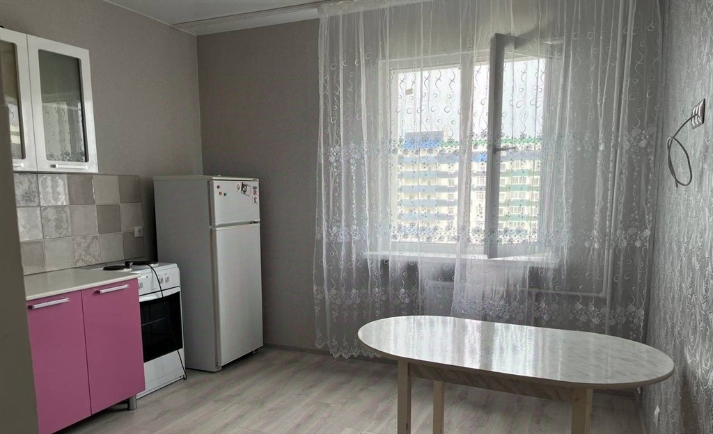 уютная 1комнатная квартира в новом доме с очень хорошим ремонтом. в квартире есть мебель новый кухонный гарнитур, кухонный стол, стиральная машина, холодильник, вешалка с тумбой в коридоре, диван. сдается на длительный срок без животных. окна выходят во двор. большая детская площадка. большая парковка для автомобилей. в шаговой доступности магазин лента, рынок и другие магазины. остановки рядом.