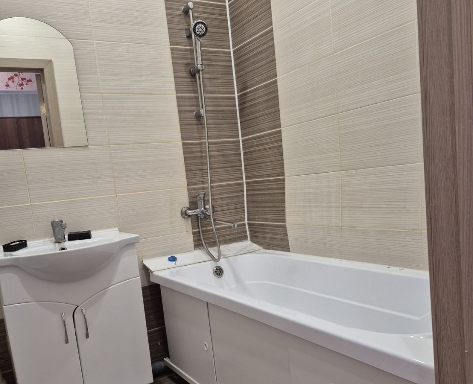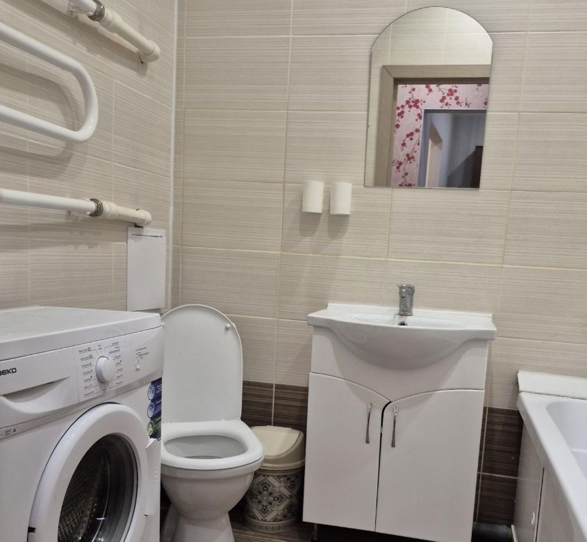 сдается уютная однокомнатная квартира на длительный срок.в квартире имеется всё для комфортного проживания.кухня просторная, площадью 10 кв.м., оборудована мебелью и техникой. из окон открывается приятный вид на город. в комнате установлен кондиционер, а также имеется удобный диван.санузел совмещенный, оснащен ванной и стиральной машиной. в прихожей предусмотрен вместительный шкаф для хранения вещей.на территории двора есть детская площадка и открытая парковка. хорошая транспортная развязка.