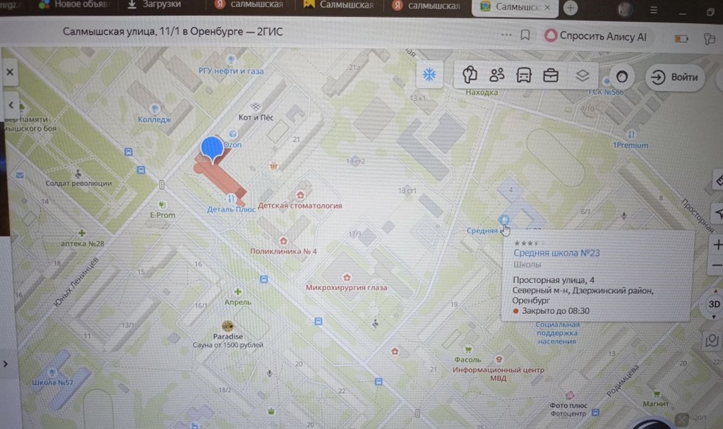 Салмышская ул 11/1, район Дзержинский (Северный мкр.)